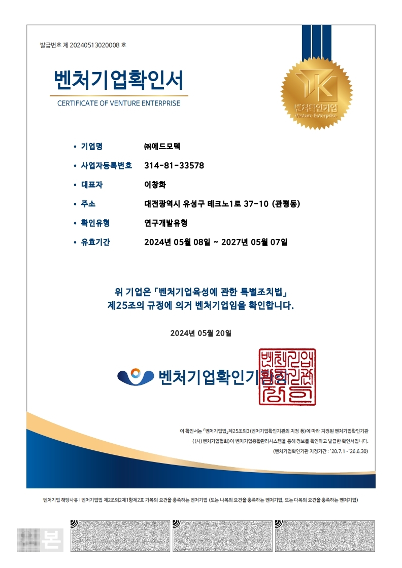 벤처기업확인서_20240513020008호 페이지 정보 작성자 관리자 작성일 24-06-13 13:53 조회 1,178회 댓글 0건 본문 . 이전글첨단기술기업 지정서 다음글기업부설연구소인증서_제20012358호 목록 댓글목록 0 댓글목록 등록된 댓글이 없습니다.